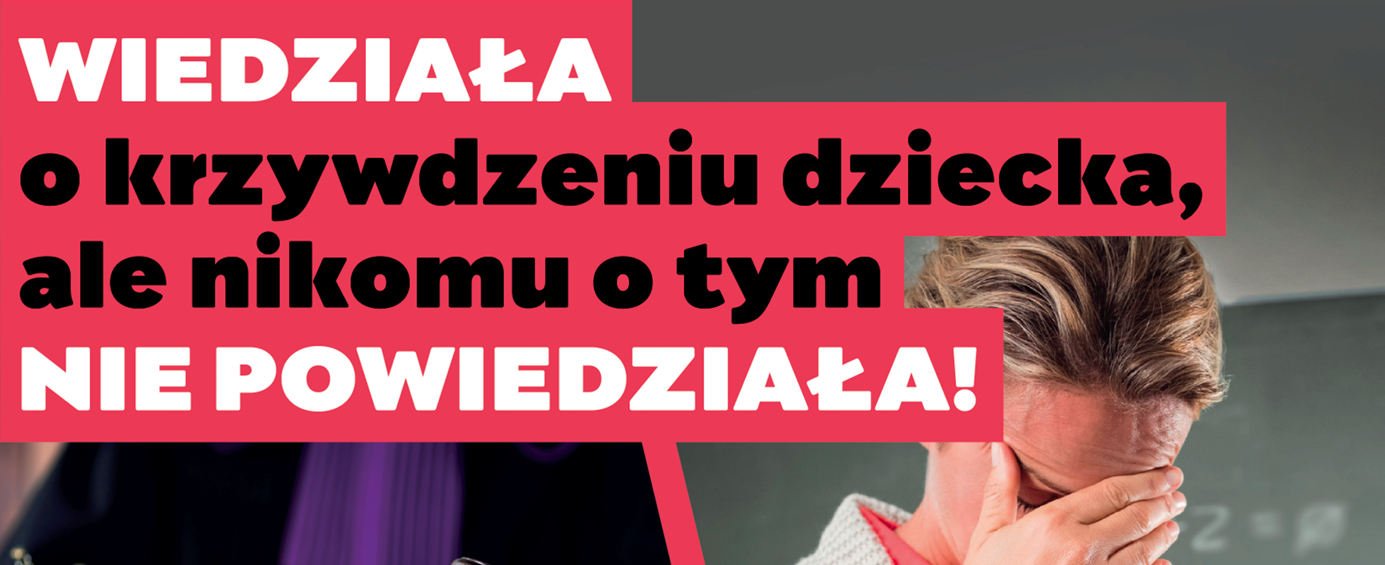 - Plakat kampanii ogólnopolskiej – „Wiedziała o krzywdzeniu dziecka, ale nikomu o tym nie powiedziała!” – przypominający, że reakcja dorosłych może uratować dziecku życie.